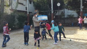 スタッフの愛ちゃんから、これから行われるミニ運動会の説明と、組分けの発表がありました。