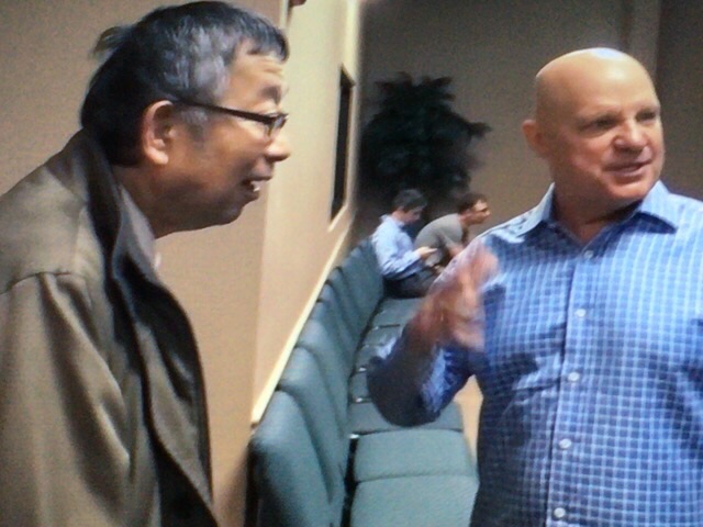 辻郷さん指揮しておられます。 椅子の上に乗っておられます。
