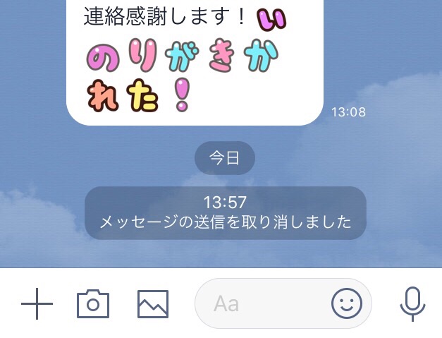 今日からの新機能ということで、試してみました。 相手も最新バージョンにしていると相手方でも消えるそうです。
