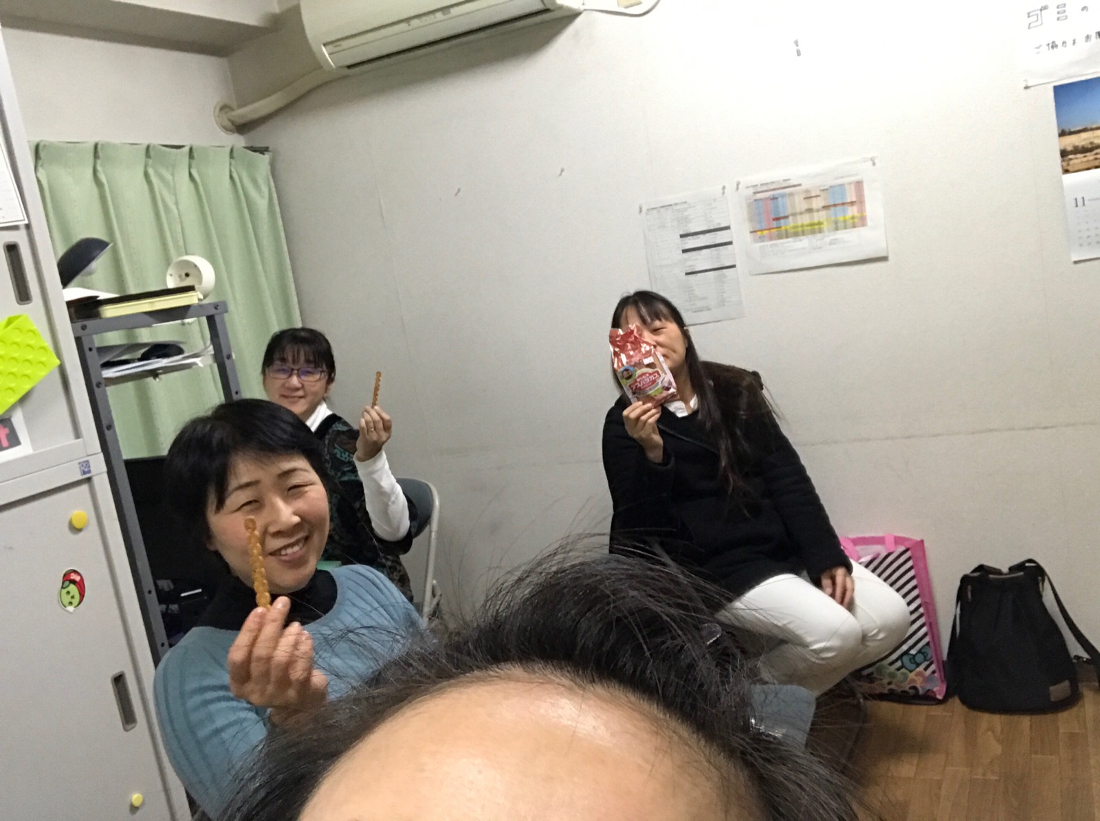 授業前のおやつタイムです^ – ^ 長く愛されているお菓子のアスパラをいただきました^ – ^ やまなか