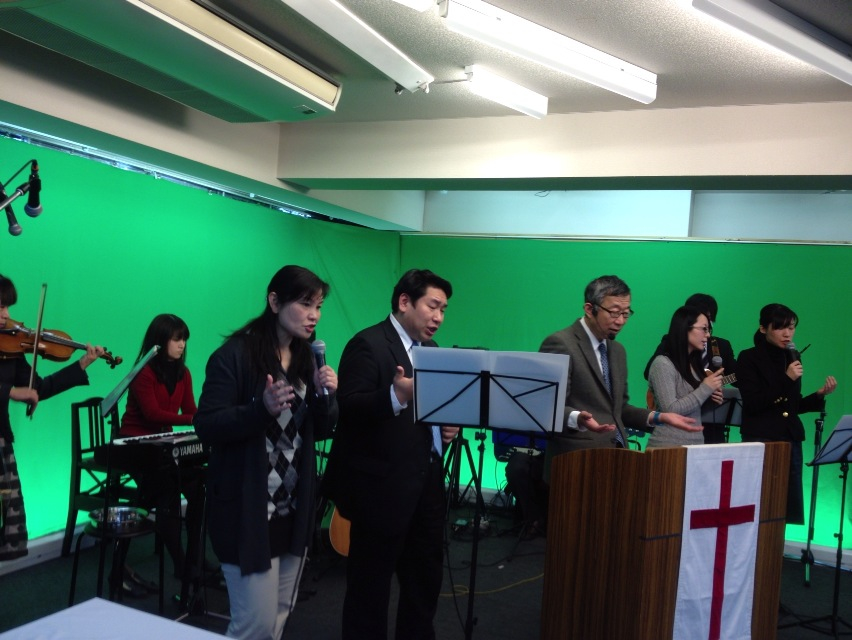 第三礼拝・牧師賛美チーム。森さん、賛美してます。