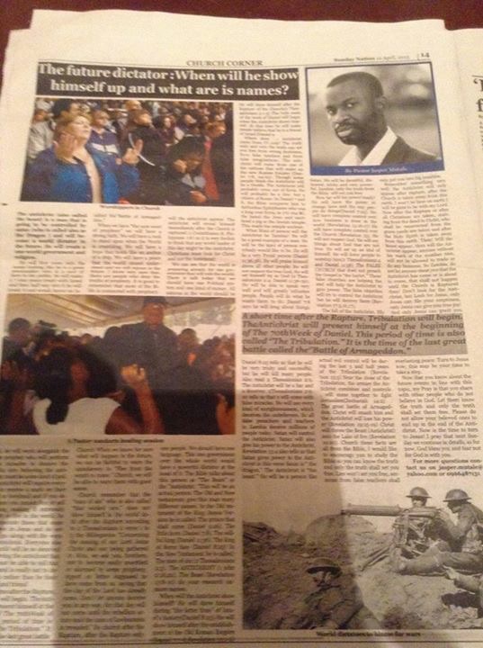 ジャスパー牧師の新聞連載が用いられています。Zambia