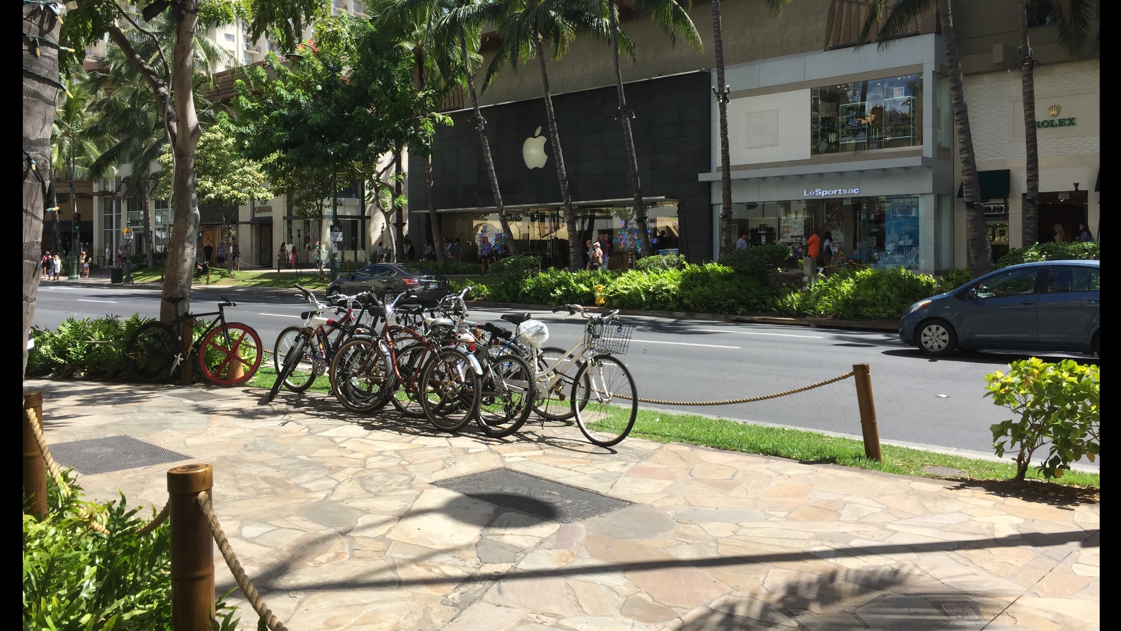 Waikiki到着。日中のカラカウア大通りです。以前この場所にて夜、Giftsが路上賛美をされました。又来て欲しいですぅ〜
