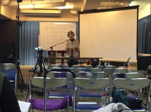 祝日ですがクラスはあります。 イスラエルに行っている弓野さんの代行で真境名さんが祈りを導きます。