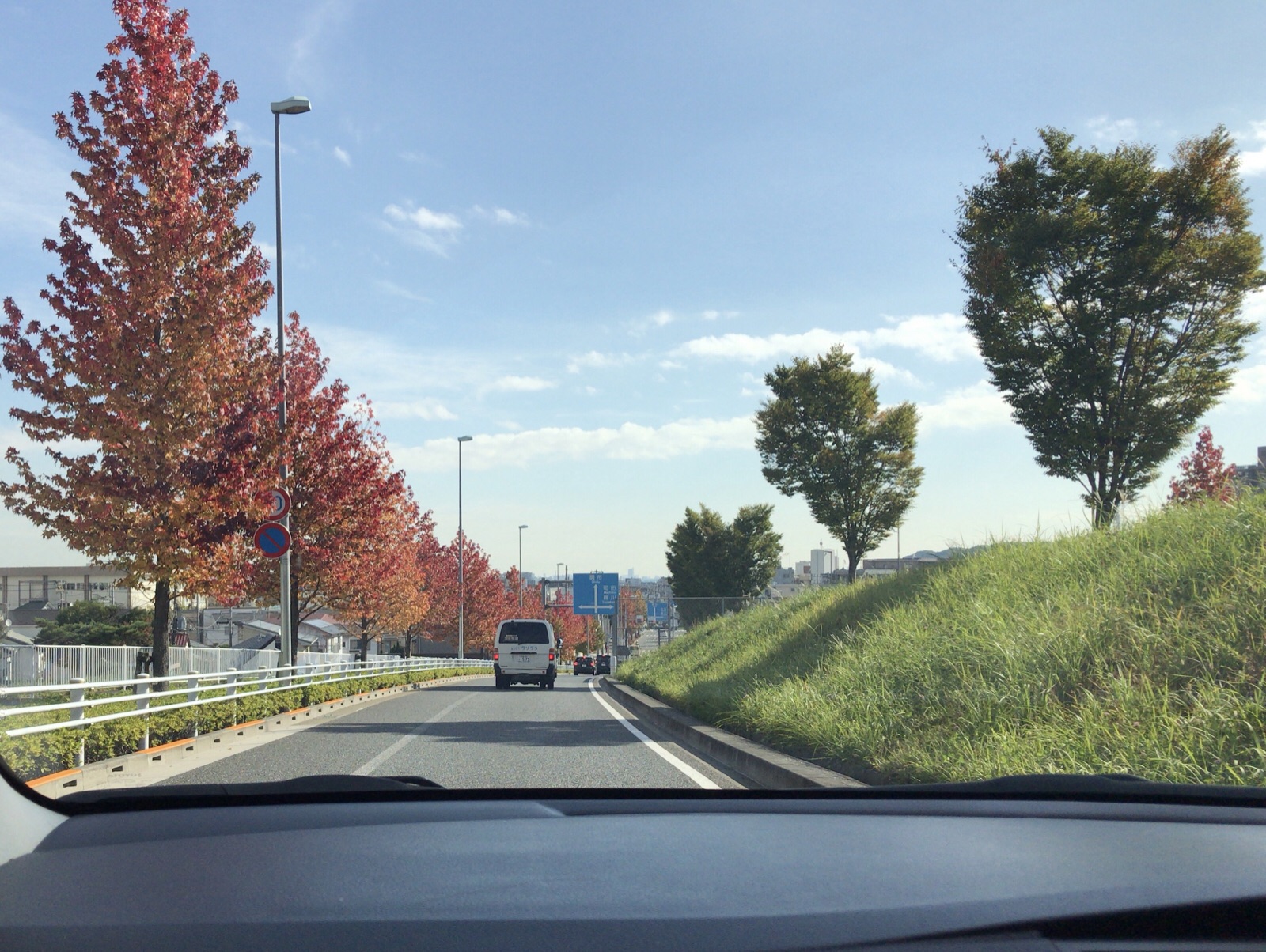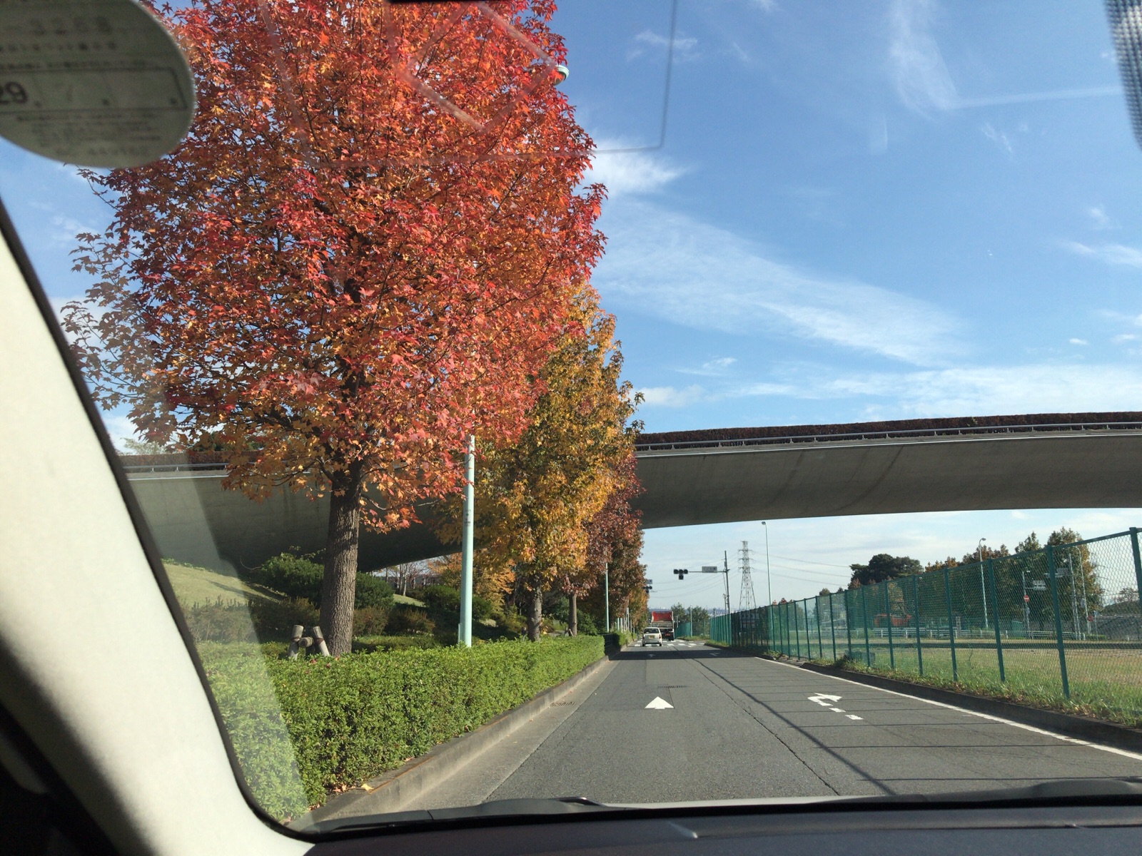 まっすぐに伸びた道に紅葉した木々が…! amagai