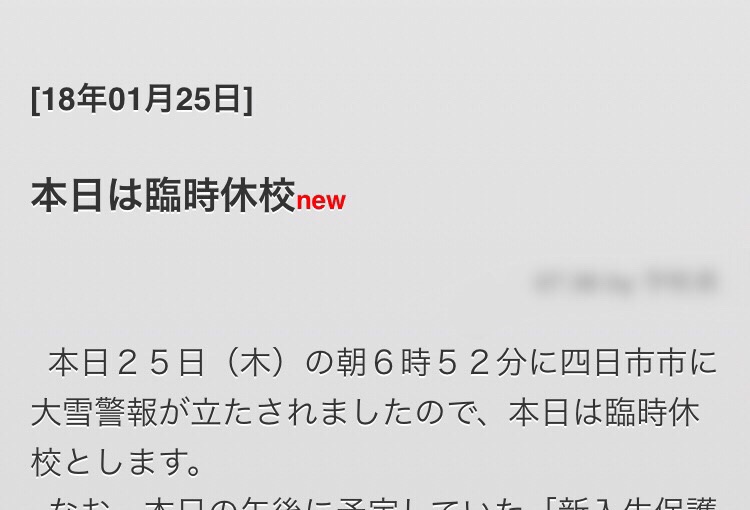 四日市福祉専門学校から連絡があり 雪の為、本日は休校になりました〜(^^) 四日市 サチコ