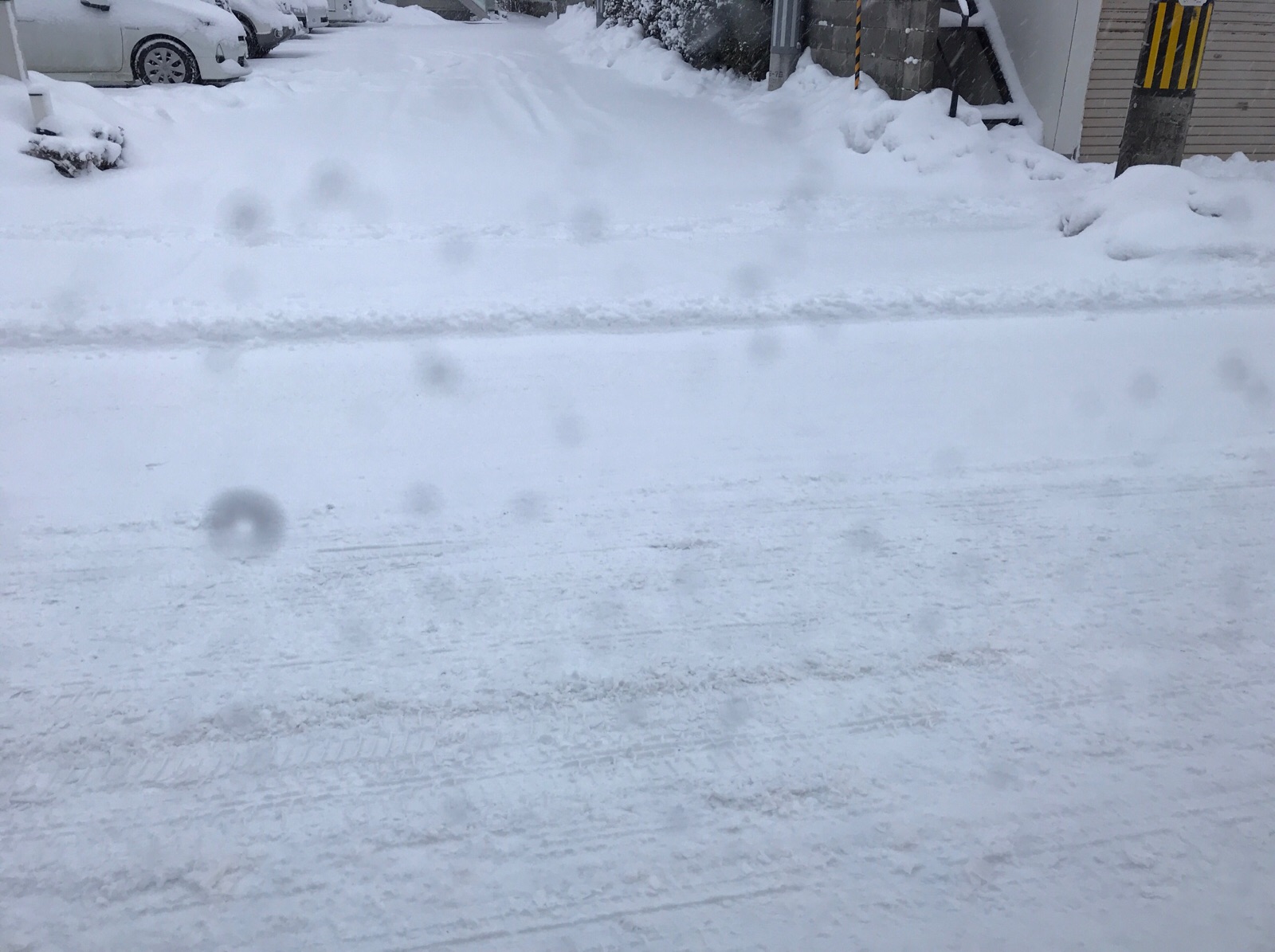 雪で一面が白く境目がわかりません。慎重に運転して仕事に行きます! 福島 みゆき
