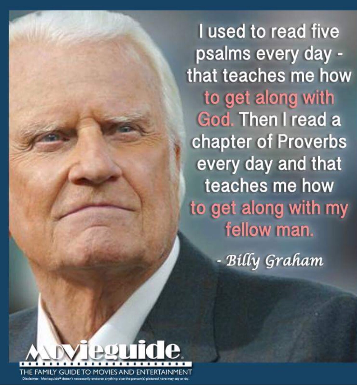 私は、毎日詩篇を5篇ずつ読んでいました。それが、神様とどうやってゆくかを教えてくれました。また、私は箴言を毎日1章ずつ読みました。それによって、同僚と付き合ってゆく方法を教えてくれました(ビリー・グラハム)。この通りにやってみようかな!peter