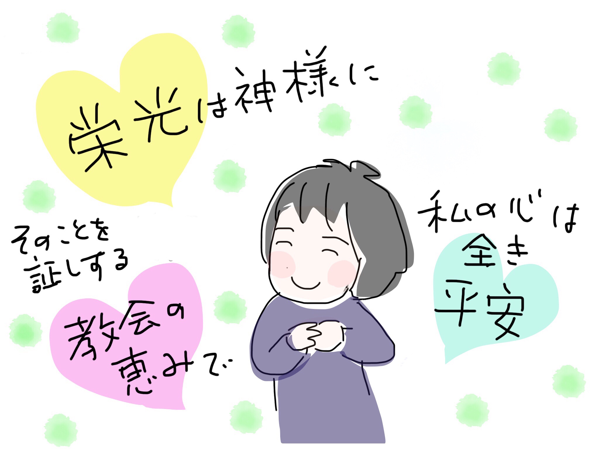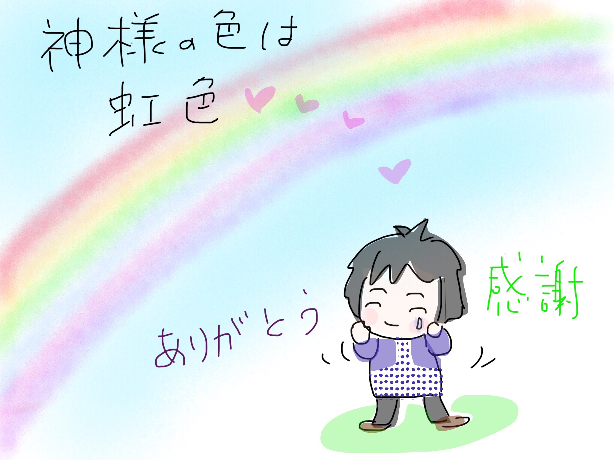 「天国の色は黄色だけではないでしょ。虹を作られた神様は、虹に七色も使っている」と言ってくれ、見る人にとっては「黄緑であっても受け取るものがある」と言ってくれました。ものすごい平安をいただきました。S姉ありがとう。