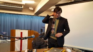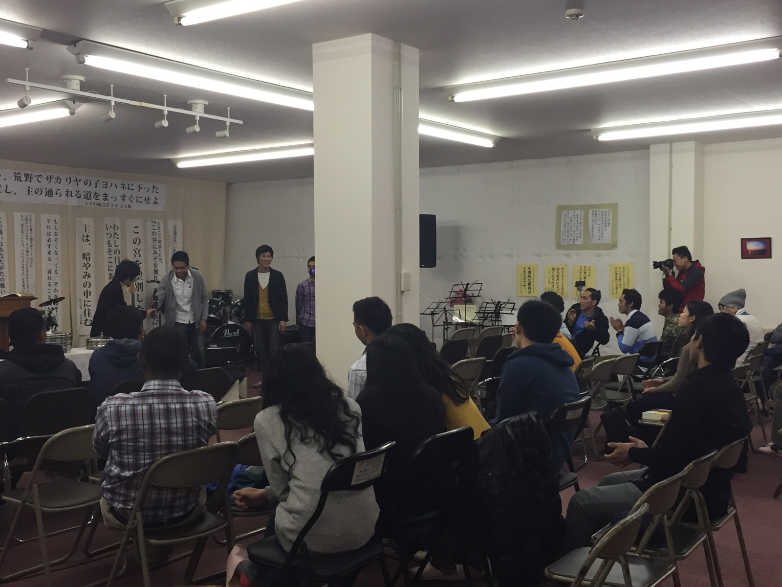 今週の半徹夜祈祷会 メッセージ担当はインターナショナルサービスチームの映像でインタビューを受けている坂井さんです(^^)