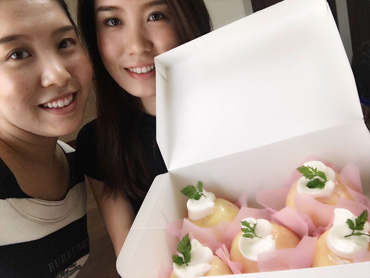 かなちゃんのおばあちゃんから桃のケーキをいただきました♡