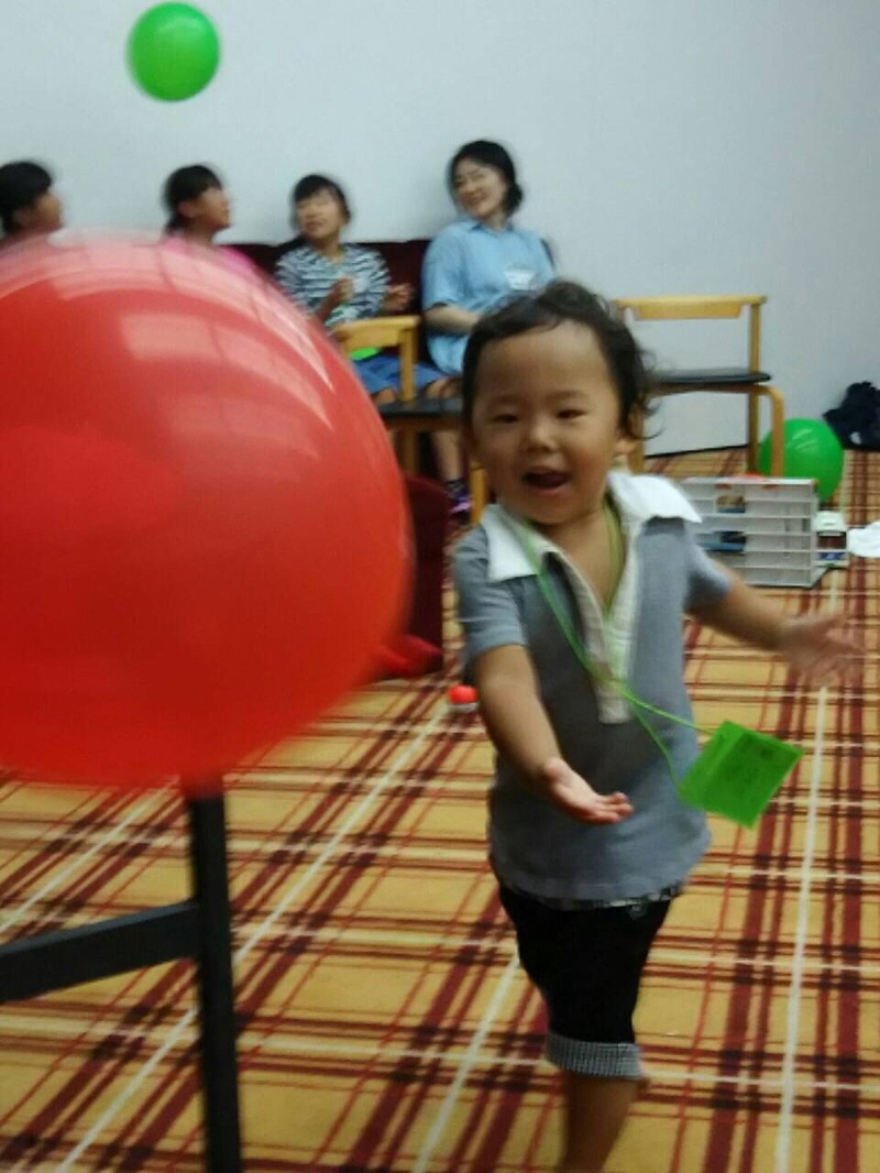 写真を頂きました。上映も風船も大好きな子どもたち。楽しそうにしています。