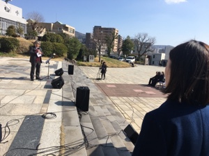 長崎駅のビルの近くで〜♬