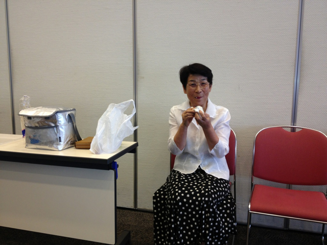 桑名教会の蛭川牧師、 昼食中です!