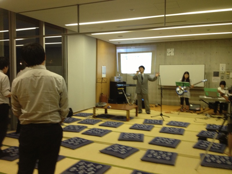 Giftsの賛美が始まりました。 大雨が降る前に路上ライブがおえられてよかったそうです。 今「主の手にある歌」を賛美中。